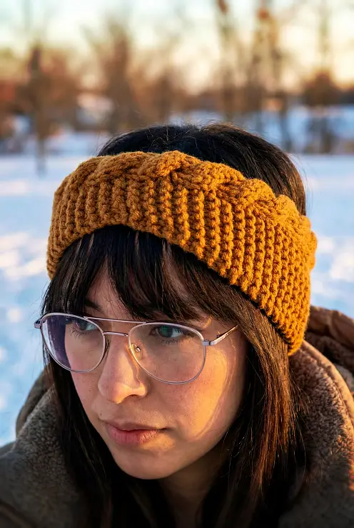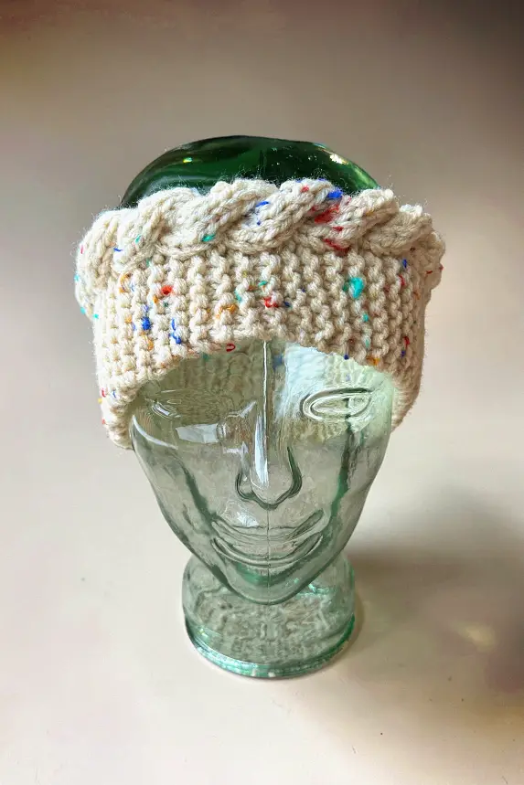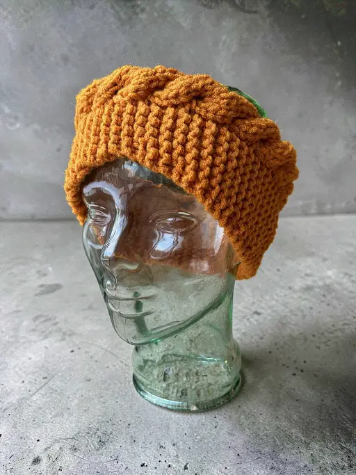 Knit a simple headband or ear warmer. Perfect for new knitters, the simple version uses very basic stitches and include how-to videos to show you how to knit 2 stitches together and make one (make an increase). It’s very plain and great for those who want a practical and thinner ear warmer to wear under something like a hoodie or a hard hat. I’m looking at you patch and construction workers πŸ˜‰